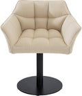 Deze stijlvolle loungestoel biedt eigentijds zitcomfort en voegt een exclusieve uitstraling toe aan elke ruimte. De rugleuning en armleuningen zijn zorgvuldig ontworpen voor een comfortabele zitervaring. Het stevige metalen onderstel biedt uitstekende stabiliteit en heeft vloerbeschermers om krassen en uitglijden te voorkomen. Perfect voor in de woonkamer, logeerkamer, kantoor, serre of eetkamer, deze stoel past harmonisch in elke omgeving.