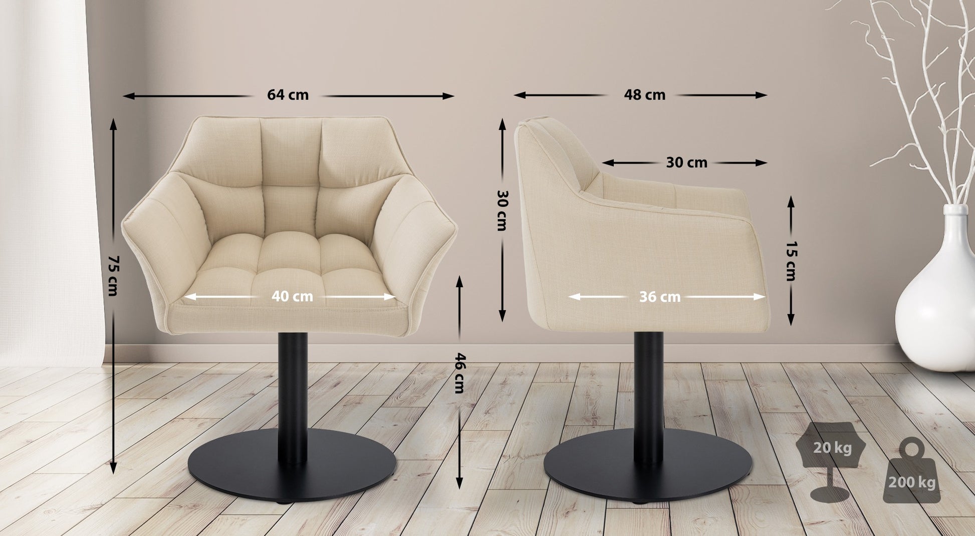 Zittingsoppervlak (BxD): 40 x 36 cm