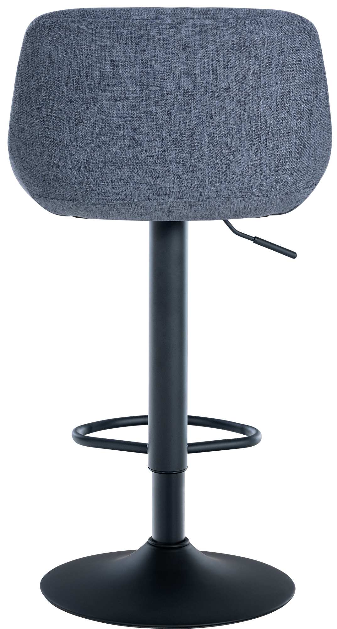 De trompetvormige voet van de barkruk kan 360° draaien en is voorzien van een voetsteun zodat je langere tijd comfortabel kunt zitten. Het metalen frame in zwart is in hoogte verstelbaar en zorgt voor een stabiele stand. Bovendien is het frame uitgerust met vloerbeschermers om krassen te voorkomen.
