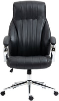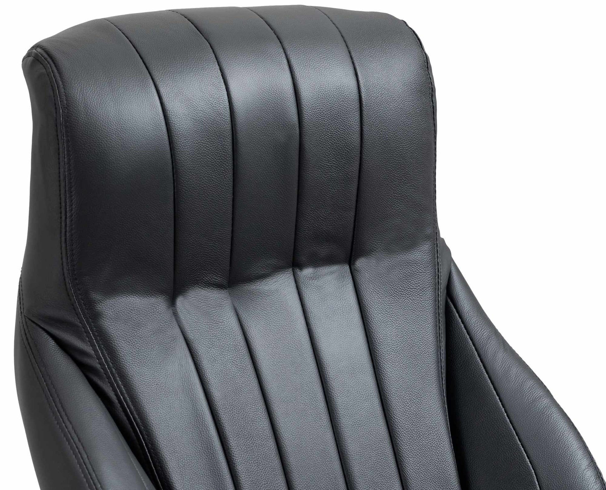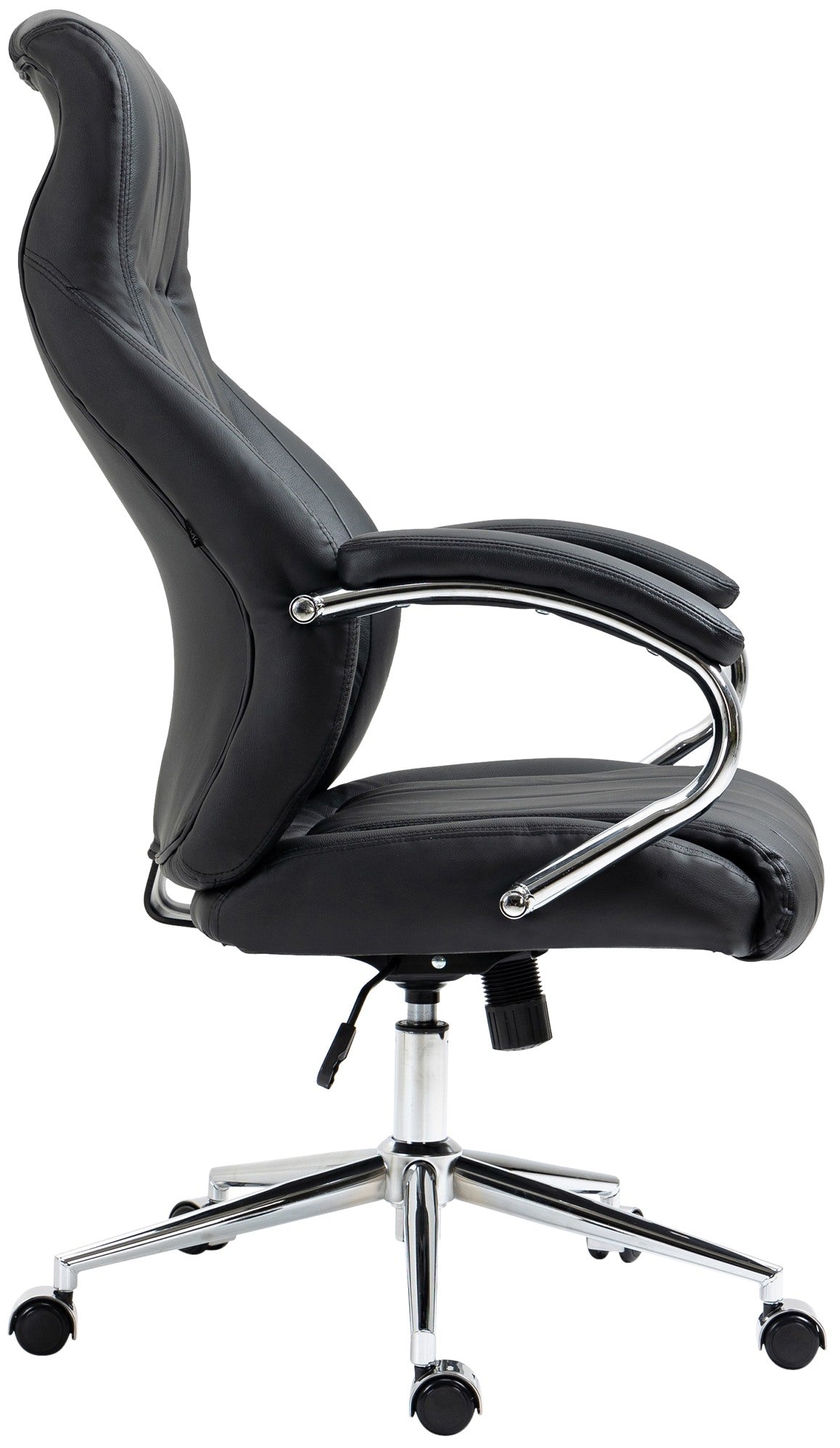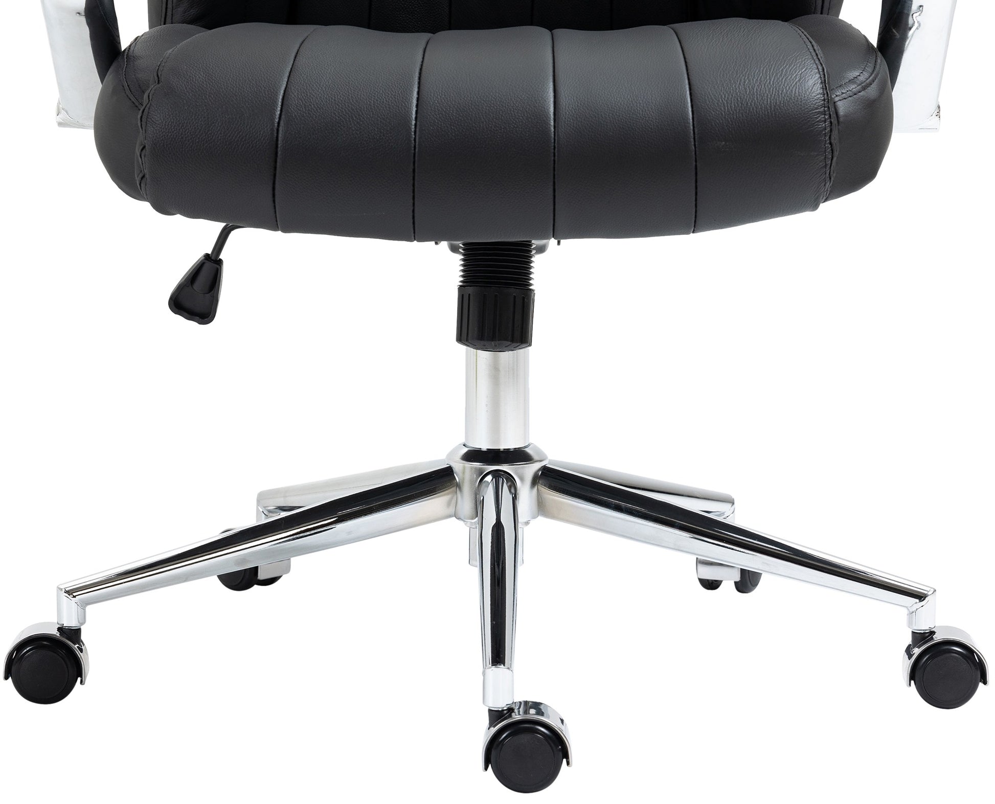 Deze luxe bureaustoel combineert een modern design met ongeëvenaard comfort. Dankzij de hoogwaardige bekleding geniet u vele uren van aangenaam zitten. De zitting en rugleuning zijn bekleed met hoogwaardig rundleer. De rugleuning heeft een ergonomische S-vorm en de zithoogte is traploos aanpasbaar, wat ergonomisch zitten bevordert. Bovendien biedt het schommelmechanisme extra bewegingsvrijheid. Het metalen frame in chroomlook zorgt voor stabiliteit. Vijf lichte wielen maken het verplaatsen over zowel harde vloeren als tapijt eenvoudig.