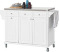 Details: Gloednieuwe luxe keukenwagen is ontworpen voor een lange levensduur. Superhandige keukenopbergkast is perfect voor de keuken of andere kamer van uw huis die wat extra opslagruimte nodig heeft. Producteigenschappen Modern en mooi ontwerp. Stabiel en duurzaam. Diverse opbergmogelijkheden. Roestvrijstalen werkblad. 3 nutsladen. 1 grote kast met verstelbare plank. 1 Diepe Kast voor Vuilnisbak. 1Handdoekrek. 1 klein opbergrek aan de zijkant. 4 rubberen wielen, waarvan twee met rem. Productdetails Afmetingen: B133 x D48,5 x H95cm; Afmetingen werkblad: B107x D48,5cm; Materiaal: roestvrijstalen werkblad/hardhout/MDF/spaanplaat; Kleur: wit; Productgewicht: 47 KG; Laadvermogen: 50 KG. Het artikel wordt geleverd in 2 platte verpakkingen en vereist zelfmontage. Gedetailleerde instructies meegeleverd. Het spijt ons dat we niet kunnen garanderen dat beide pakketten tegelijkertijd worden geleverd. Begin met de montage nadat beide pakketten zijn geleverd. De decoratieve elementen zijn niet inbegrepen in het pakket. Als u vragen heeft, neem dan per e-mail contact met ons op, wij zullen zo snel mogelijk antwoorden!