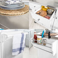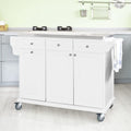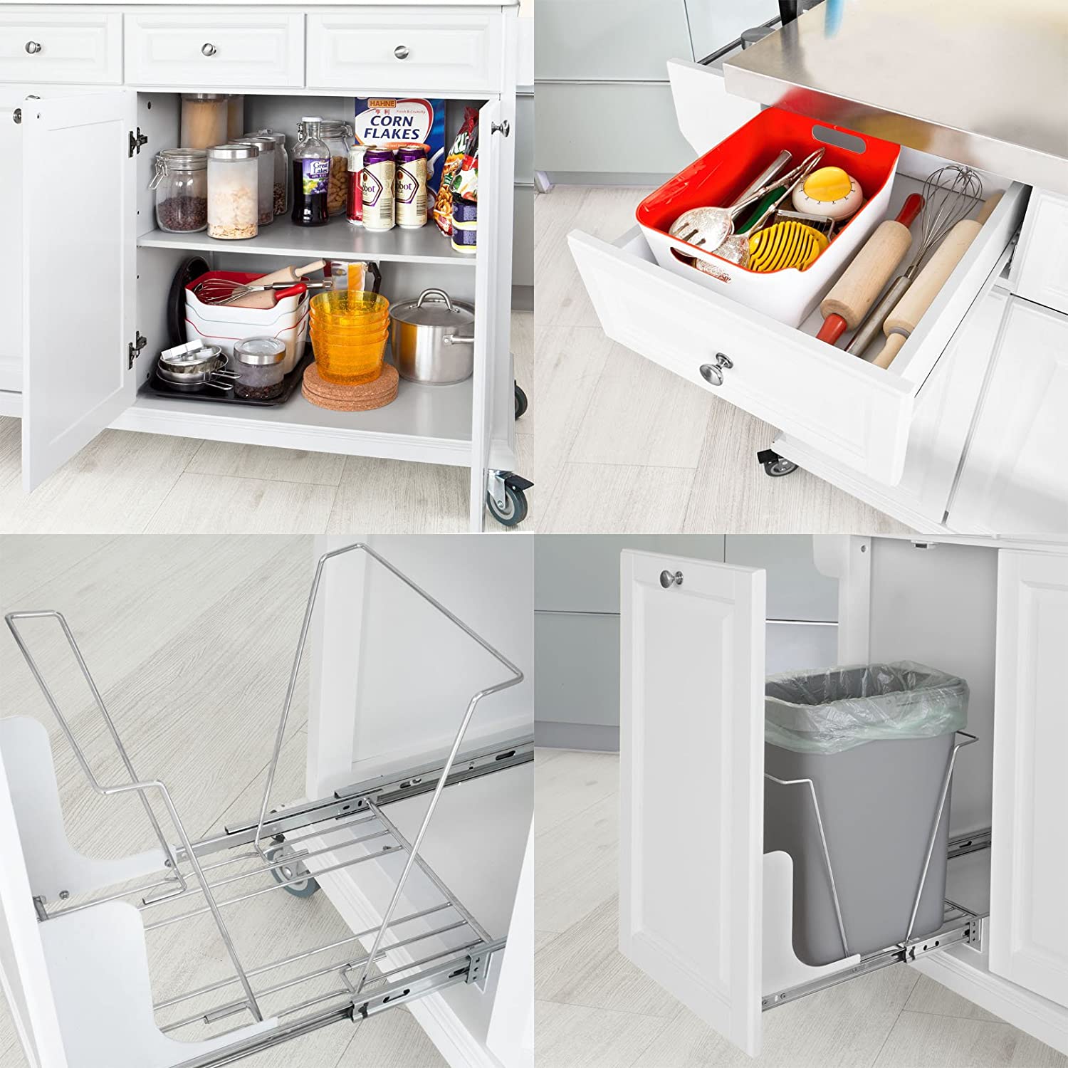 - Inclusief 1 roestvrijstalen werkblad, 3 laden, 1 opbergkast verdeeld over twee verdiepingen, 1 afvalopbergkast, 1 handdoekenrek, 1 zijopbergrek en 4 zwenkwielen.