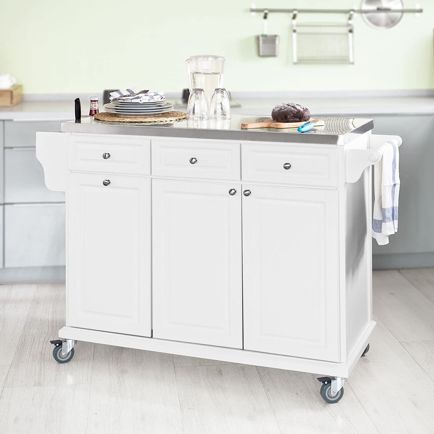 Luxe Keukentrolley met Grote Opbergkast - Keukeneiland met RVS Werkblad