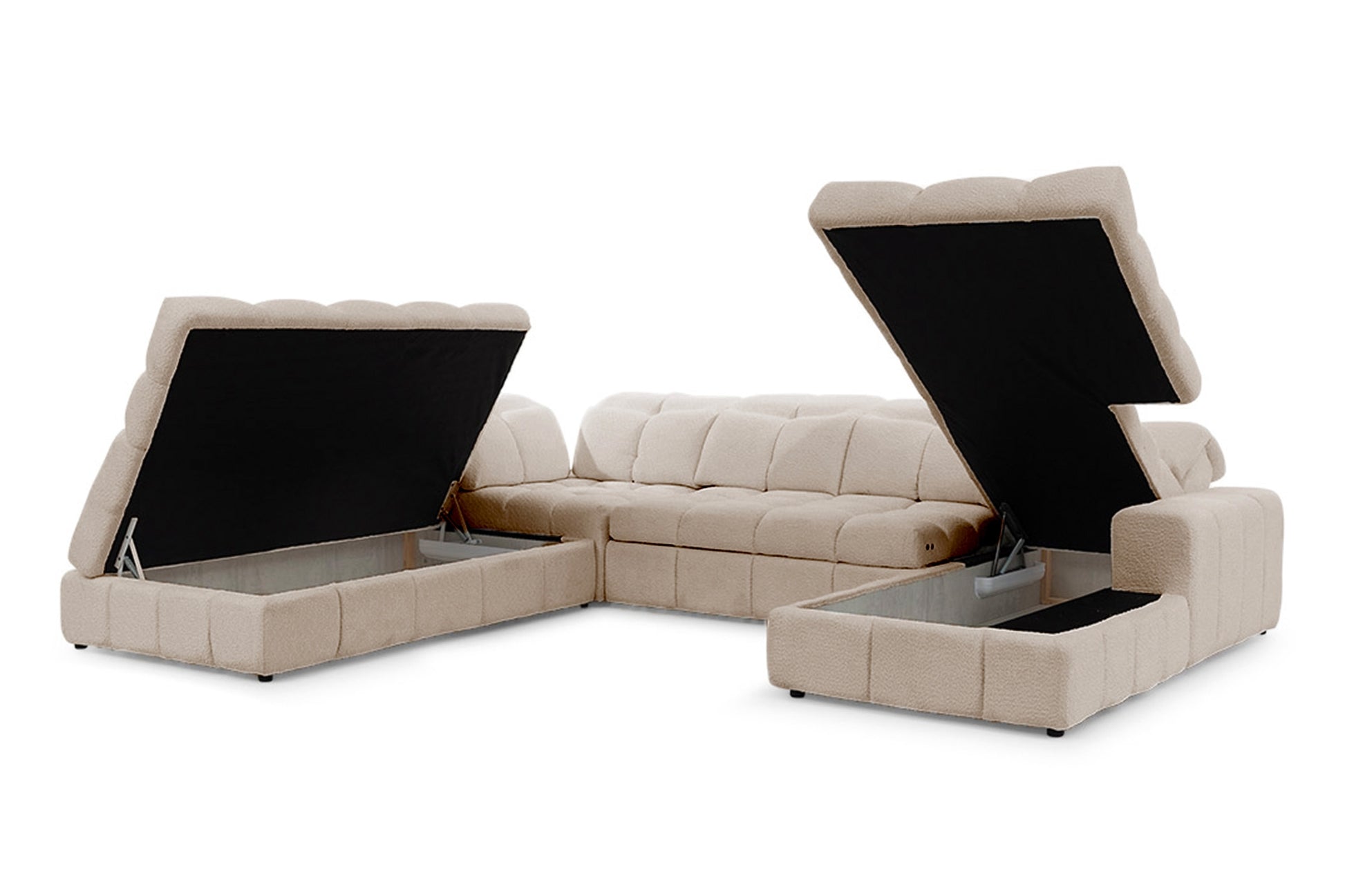 Magnelio U II elektrische hoekbank met slaapfunctie en opbergruimte | Beige Boucle | Links