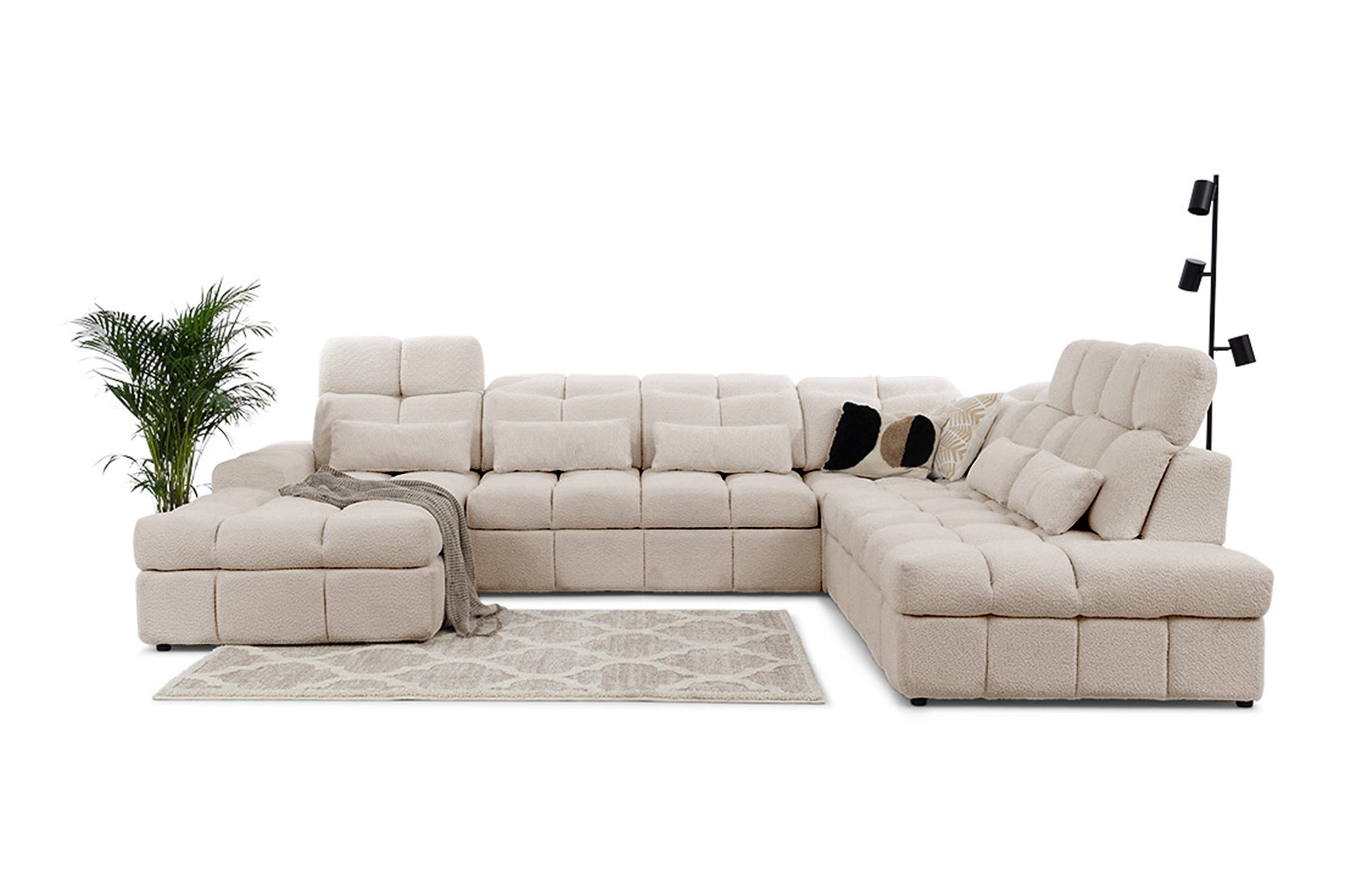 Magnelio U II Hoekbank met Slaapfunctie - U-vorm Rechts | Beige Bouclé | 342x107x280 cm