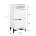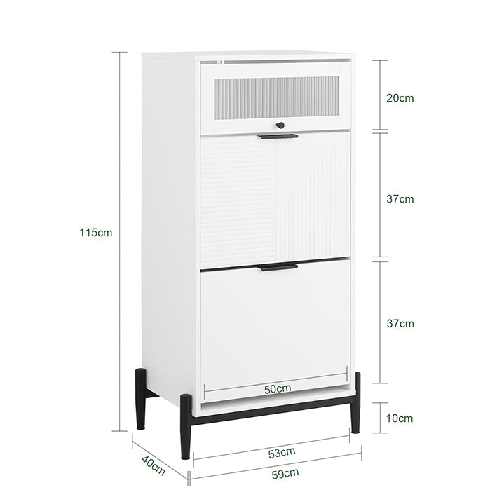 De Shoe Cabinet Organizer is een veelzijdige opbergoplossing voor je schoenen, sjaals en hoeden. Deze kast is gemaakt van duurzaam MDF en metaal, heeft een afmeting van ongeveer 59x115x40cm en wordt geleverd met twee opvouwbare konijnen voor flexibele opbergmogelijkheden. De uittrekbare glazen deur zorgt voor een stijlvol tintje en biedt gemakkelijke toegang tot uw spullen.
