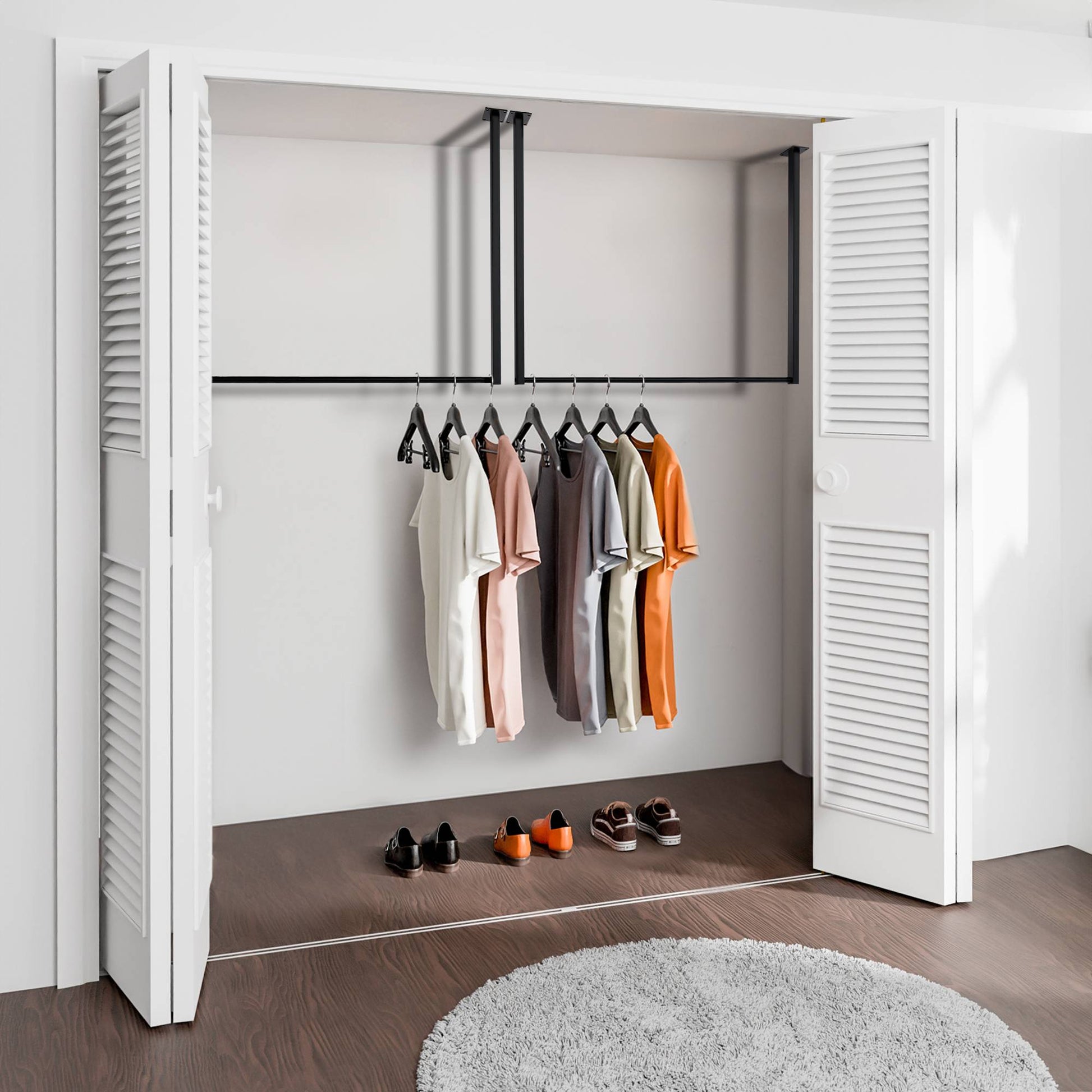 De minimalistische kledingstang is perfect voor gangen, slaapkamers, kleedkamers en meer. Dankzij de plafondbevestiging biedt het veelzijdige mogelijkheden voor combineren. U kunt het bijvoorbeeld samenvoegen met een ladekast, een dressoir of een schoenenrek. Met voldoende ruimte voor jassen, shirts en blouses zorgt deze open kledingstang ervoor dat kleding kreukvrij en altijd binnen handbereik blijft.