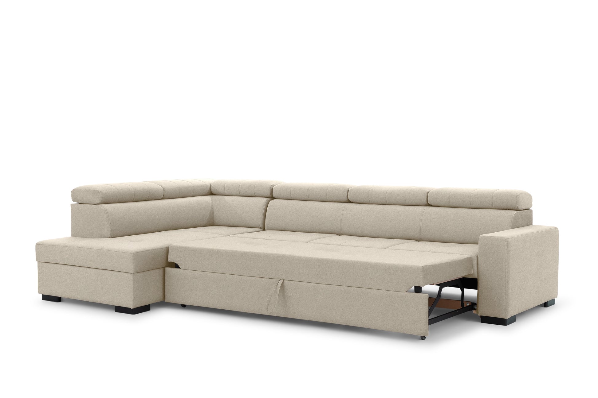 Modeno Maxi linkshandige hoekbank met slaapfunctie - Crème Ado 1601 vlecht | 328x104/85x202 cm