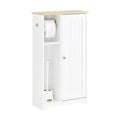 Verfraai uw badkamer met dit moderne kastje met toiletrolhouder, verticale groefstructuur en een vak voor een toiletborstel. Compact en waterdicht, perfect voor kleine badkamers.