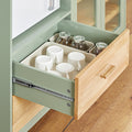 Modern Dressoir met Glazen Deur - Keukenkast - Dressoir - Halkast - Opbergorganisator - Wijnglas- en flessenhouder - Ruim magnetroncompartiment - MDF en rubberhout - 120 cm x 90 cm x 40 cm - Groen