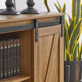 Ruime opbergmogelijkhedenMet twee open vakken en twee verstelbare planken verborgen achter elegante schuifdeuren biedt dit dressoir voldoende ruimte om serviesgoed, decoraties of media-apparaten te ordenen.