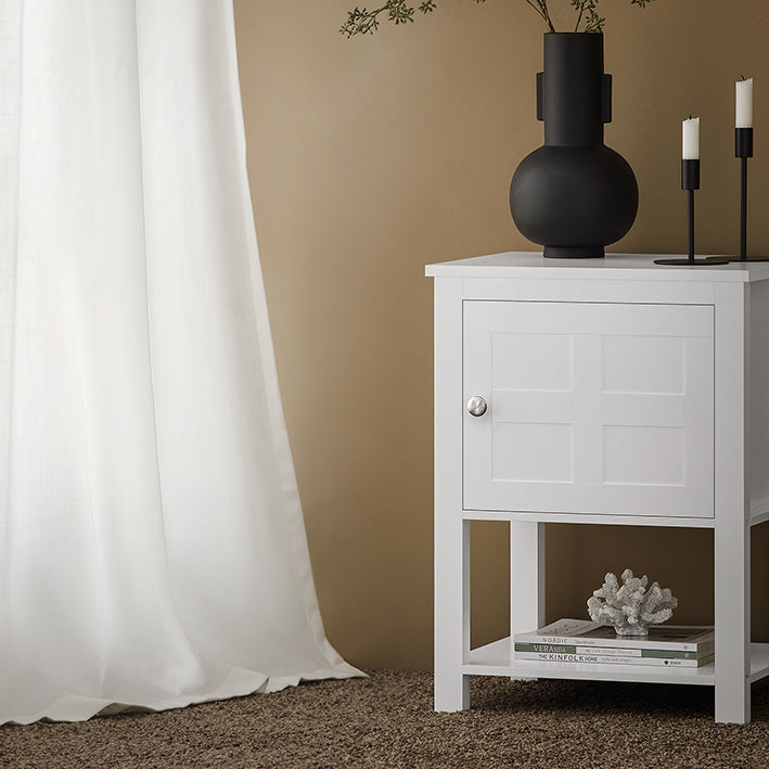 Modern ontwerpDit nachtkastje heeft een eenvoudig, strak ontwerp met een strakke witte afwerking en past in elk eigentijds interieur. De minimalistische uitstraling integreert naadloos in uw slaapkamer of woonkamer, waardoor de algehele sfeer wordt versterkt.