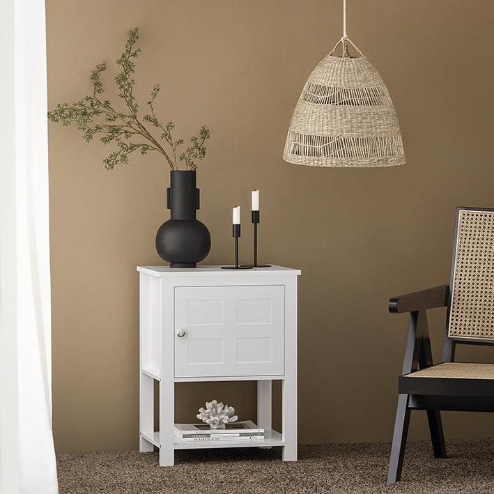 Ruimte-efficiëntMet zijn compacte afmetingen past het nachtkastje perfect in smalle nissen en naast standaardbedden, waardoor het een ideale keuze is om de ruimte te optimaliseren zonder in te boeten aan stijl.