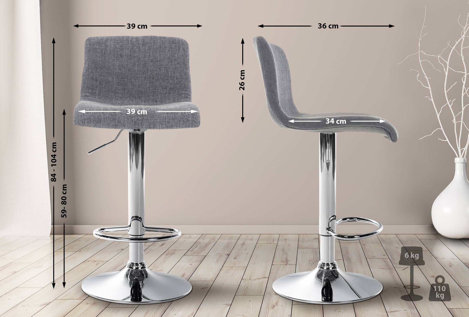 Barkruk Hover Stof licht grijs, Metaal in chroomoptiek