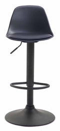 Deze moderne barkruk set combineert kunststof, kunstleer en een stevig metalen frame. De zitting is gemaakt van kunststof, met comfortabele en duurzame koudschuim vulling en onderhoudsvriendelijke kunstlederen bekleding. De barkrukken zijn in hoogte verstelbaar en passen zich aan elke lichaamshoogte aan. De trompetvoet, beschikbaar in chroom-look of matzwart metaal, heeft een voetsteun en vloerbeschermers om krassen en schade aan vloeren te voorkomen.