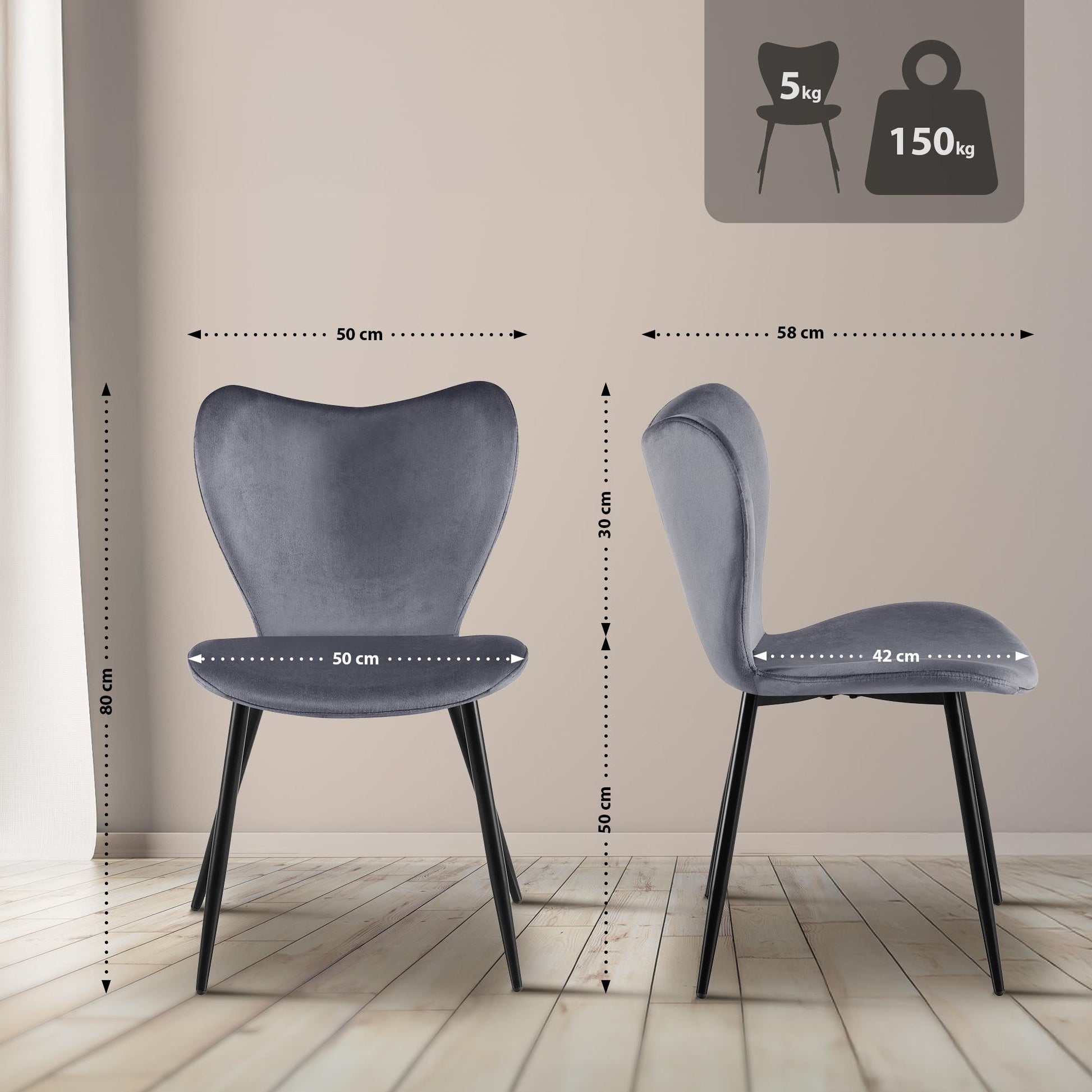 Moderne fluwelen eetkamerstoel - Kuipstoel - Ergonomisch comfort - Donkergrijs, metalen onderstel