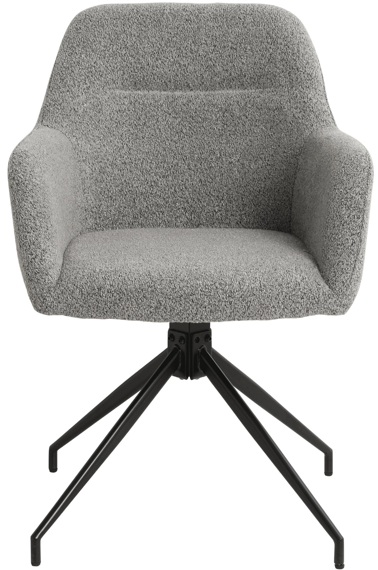 Moderne grijze eetkamerstoel met armleuningen en draaifunctie