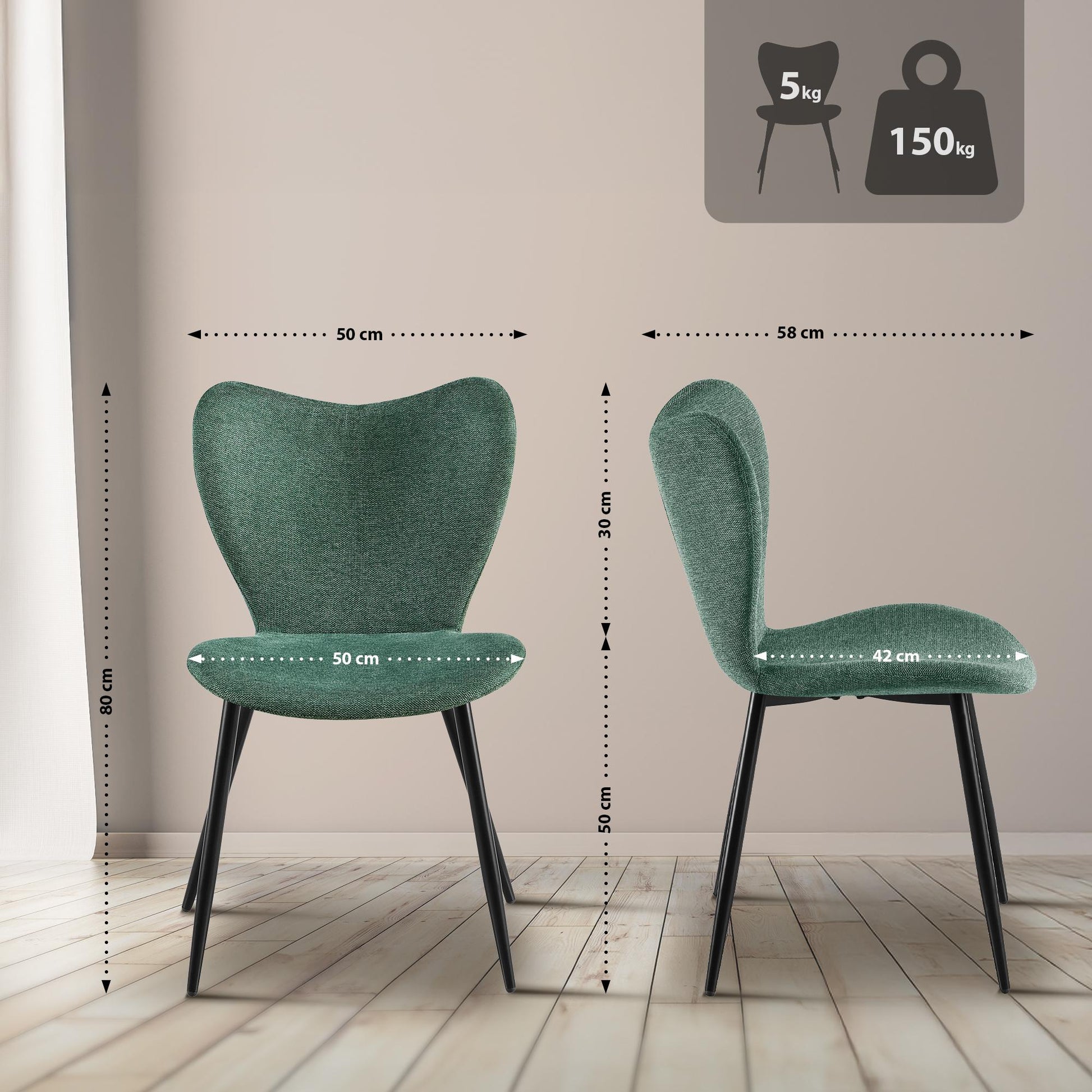 Deze moderne groene eetkamerstoel biedt een hoog zitcomfort en een eigentijdse, tijdloze uitstraling. Perfect voor aan de eettafel, in de keuken, woonkamer of andere ruimtes in huis.