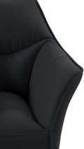 Deze moderne loungestoel biedt eigentijds comfort en voegt een vleugje exclusiviteit toe aan elke kamer. De rugleuning, armleuningen en bekleding zorgen voor een gezellige zitervaring. De stevige metalen basis zorgt voor stabiliteit en is uitgerust met vloerbeschermers om krassen en uitglijden te voorkomen. Of het nu in de woonkamer, logeerkamer, kantoor, serre, of eetkamer is, deze stoel integreert naadloos in elke ruimte.