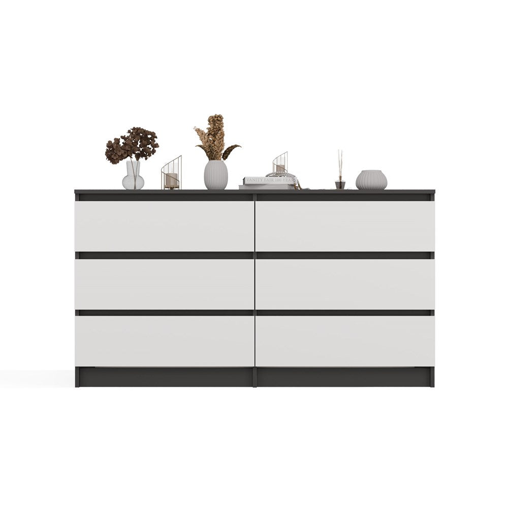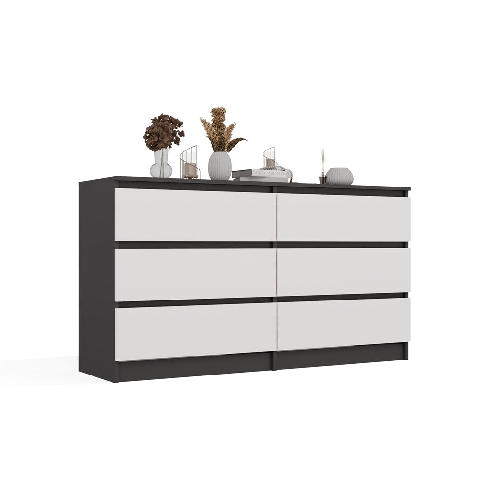 Moderne Kist met 6 Lades MALWA M6 140 Antraciet-Wit