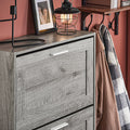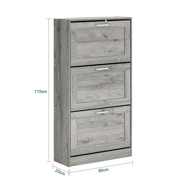 Voldoende opslagcapaciteitDe kast is uitgerust met drie kleppen en biedt ruimte voor het opbergen van verschillende schoenmaten en -stijlen. De bovenplaat is perfect voor essentiële spullen zoals sleutels, fotolijsten of decoratieve spullen.