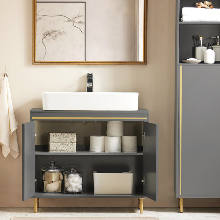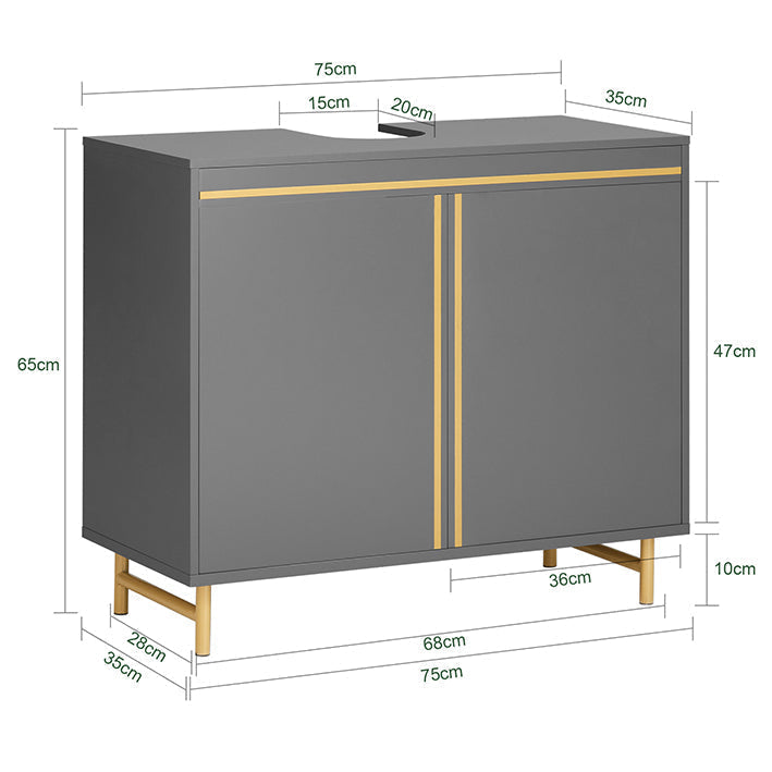 moderne wastafelonderkast - badkamerijdelheid - opbergorganisator - stijlvolle grijze en gouden afwerking - ruim interieur - eenvoudige montage - 75 cm x 65 cm x 35 cm