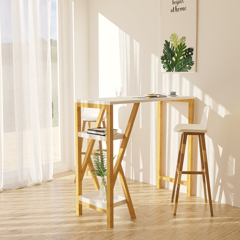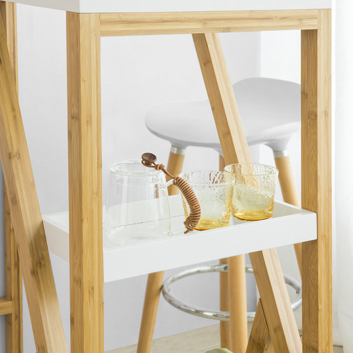 multifunctionele bartafel - keukentafel - eettafel - constructie van bamboe en MDF - ruime opbergruimte - veelzijdig gebruik - 122 cm x 107 cm x 45 cm - wit FWT56-W