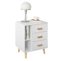 Stijlvolle opslagoplossingenHet nachtkastje is uitgerust met drie uittrekbare lades en open vakken en biedt privacy en gemakkelijke toegang, zodat je je spullen georganiseerd en binnen handbereik houdt.