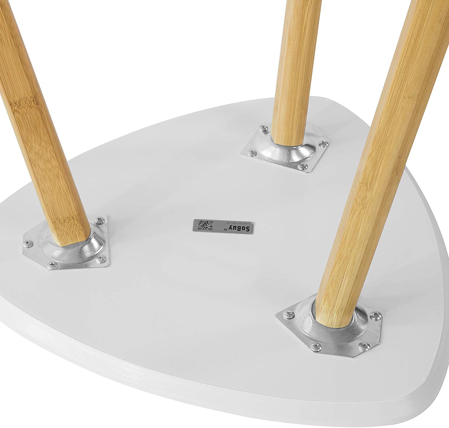 - Het blad is gemaakt van MDF met witte lak. De poten zijn gemaakt van bamboe met gelakte coating.