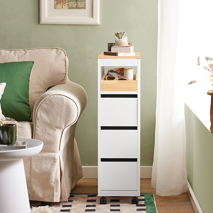 Voldoende opslagcapaciteitMet één uitneembaar dienblad en drie ruime lades biedt hij voldoende ruimte om al je benodigdheden op te bergen, van kruiden in de keuken tot badgerei in de badkamer.