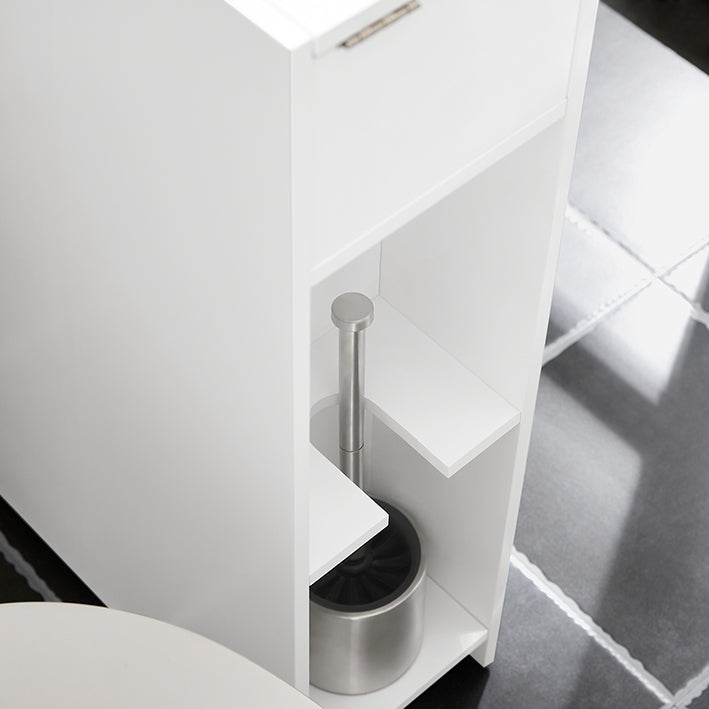 Uitbreidbaar met bijpassende setVergroot je opbergmogelijkheden met de volledige set, inclusief een hoge kast, toiletrolhouder, gootsteenonderkast en linnenkast, allemaal ontworpen om mooi bij elkaar te passen.
