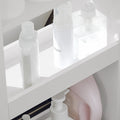 Verstelbare opslagoptiesMet de Niche Trolley, voorzien van een verstelbare plank achter de deur, kunt u de opslagruimte aanpassen aan items van verschillende groottes, van papieren handdoeken tot toiletborstels.