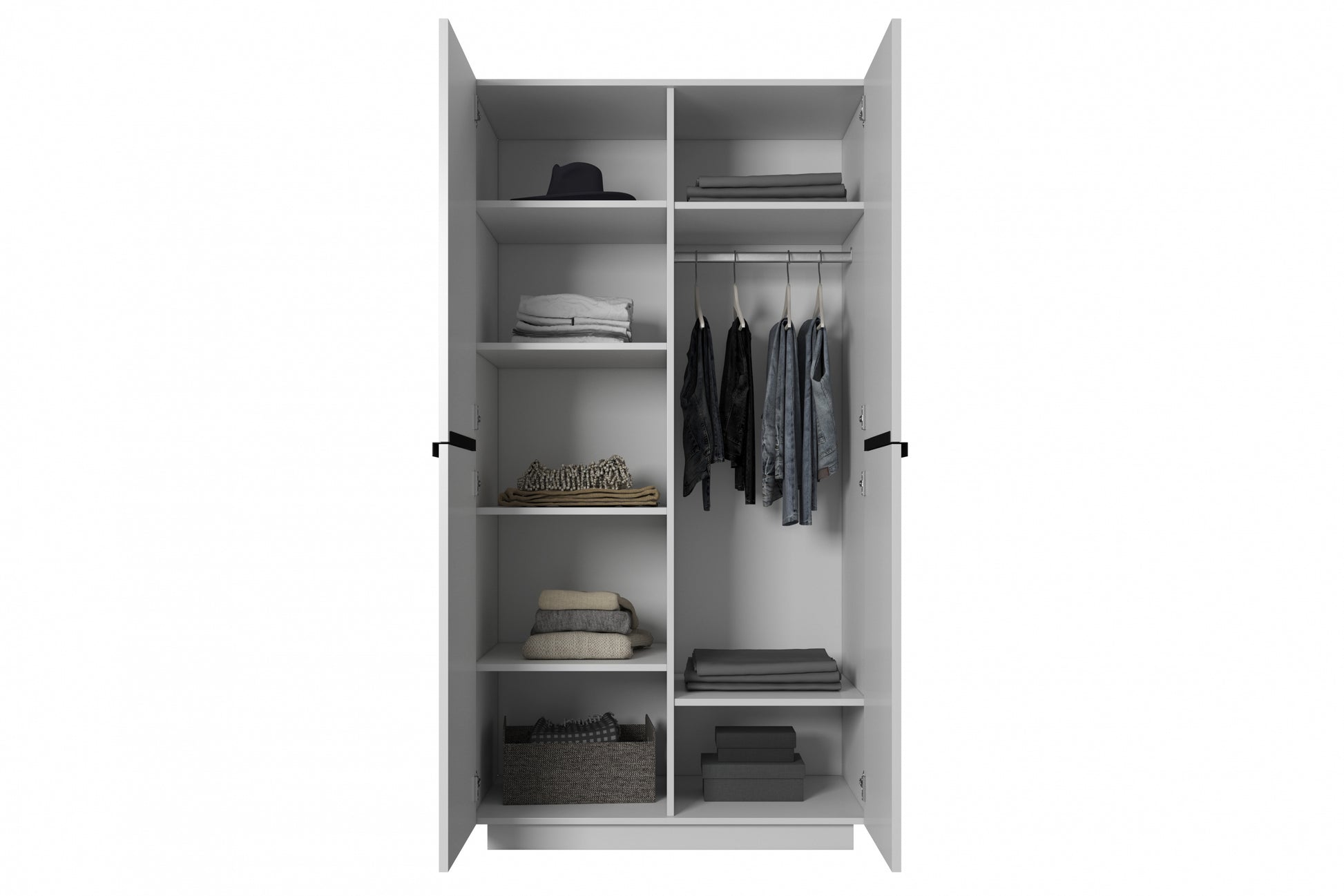 Nicole Kledingkast 100 cm – Wit Mat met Zwarte Handgrepen