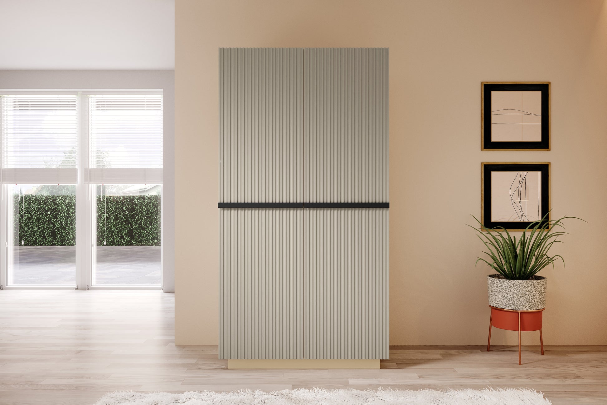 Dankzij het minimalistische ontwerp past de Nicole kledingkast perfect in zowel moderne als klassieke interieurs. Zet hem in de slaapkamer, hal of kleedkamer voor stijlvolle opbergruimte die helpt uw kamer opgeruimd en overzichtelijk te houden. De ingetogen kasjmierkleur en elegante accenten creëren een tijdloze uitstraling. Het gebruik van hoogwaardige materialen zorgt ervoor dat de kast jarenlang meegaat, terwijl het eenvoudig schoon te houden is. Kortom, deze garderobekast biedt u ruimtebesparend comfort en een verfijnde look in één functioneel meubelstuk.
