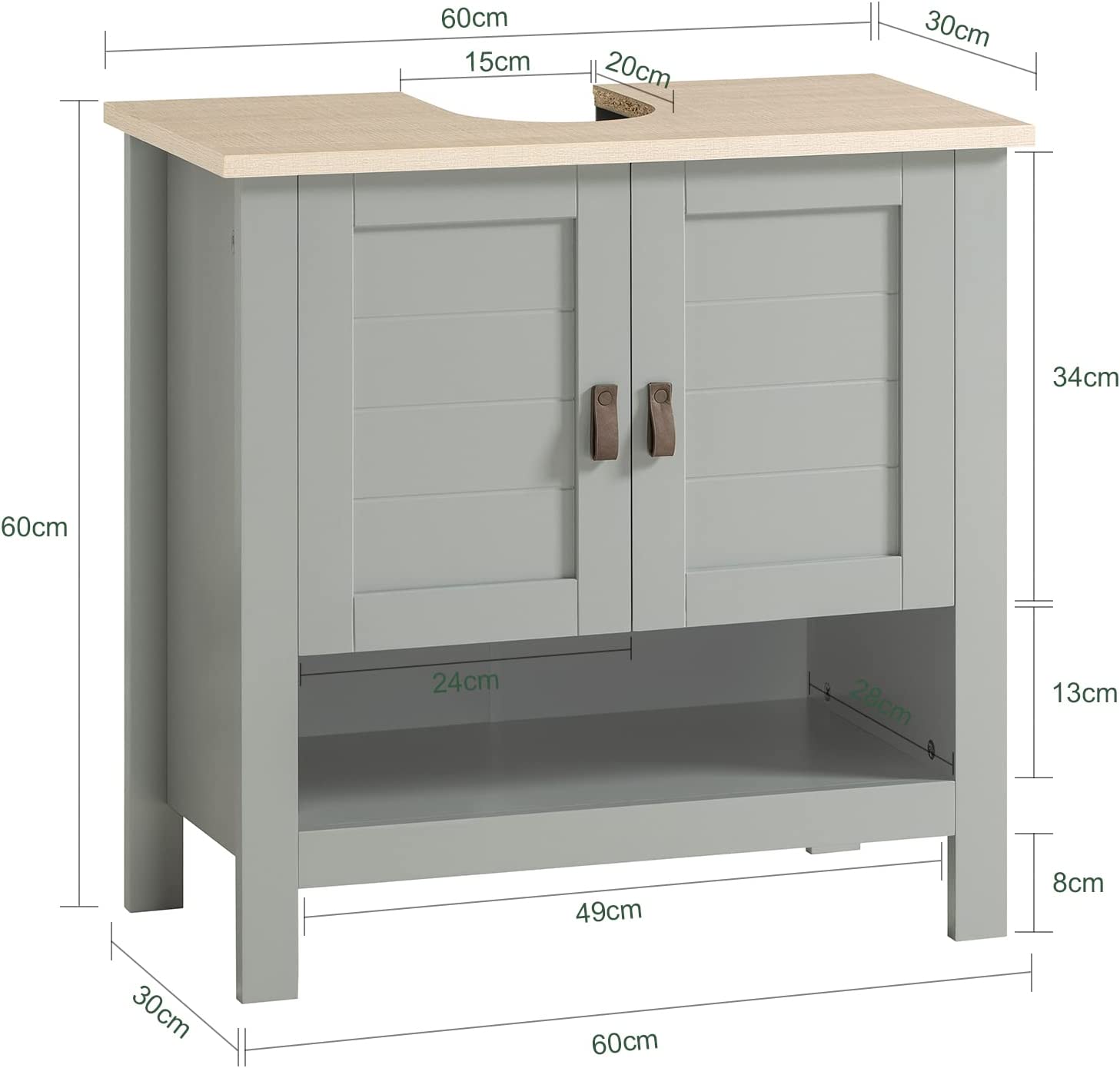 Ondergootsteenkast Badkamer - Wastafelmeubel - Badkameropbergkast met dubbele deuren - B60 x D30 x H60cm
