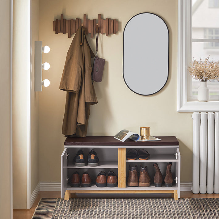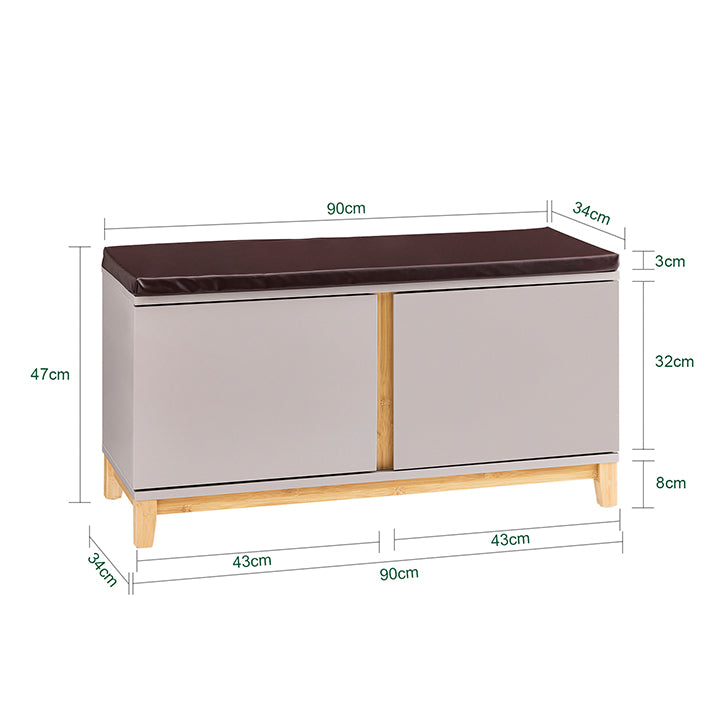 Opbergbank - Halorganisator - Schoenenkast - Verstelbare Planken - Comfortabel Kussen - 90 x 34 x 47 cm
