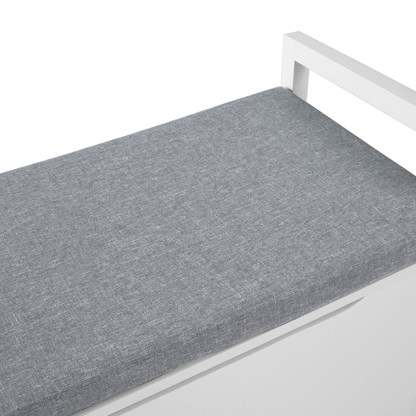 Details: Modern design bankje met opbergkist, ideaal in de gang, woonkamer, slaapkamer en kinderkamer. Het gemakkelijk te openen werkblad biedt extra opbergruimte. Comfortabel gewatteerd zitkussen is afneembaar. Onder de zitting bevindt zich een opbergvak. Je kunt er allerlei spullen in opbergen. Gemaakt van hoogwaardig MDF in witte lak. De zijdelen zijn gemaakt van wit gelakt staal. Productdetails Materiaal: MDF, metaal. Afmetingen: B86 × D38 × H54cm. Gewicht: 17 kg. Laadvermogen: 120 kg. Het artikel wordt geleverd in een platte verpakking en vereist zelfmontage. Gedetailleerde instructies meegeleverd. De decoratieve elementen zijn niet bij de levering inbegrepen. Als u vragen heeft, neem dan per e-mail contact met ons op, wij zullen zo snel mogelijk antwoorden!