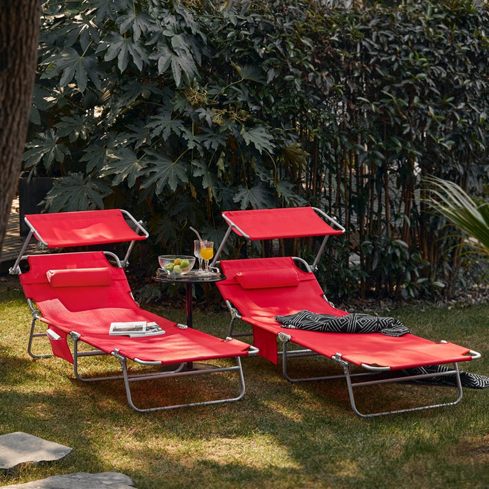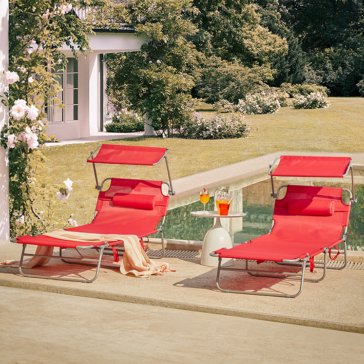 De grote terrasstoel met verstelbare zonneklep en 5-traps kantelverstelling