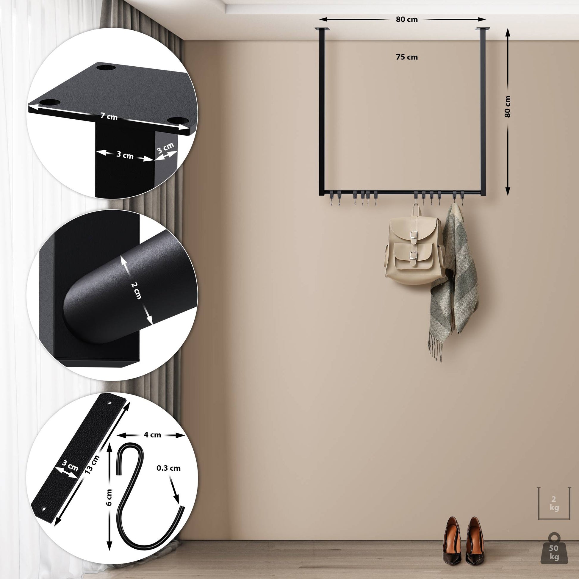 De plafondmontage biedt flexibiliteit en veelzijdigheid. Hang hem bijvoorbeeld samen met een ladekast, dressoir of schoenenrek. Met voldoende ruimte voor jassen, shirts en blouses zorgt deze open roede ervoor dat kleding kreukvrij en altijd binnen handbereik is.
