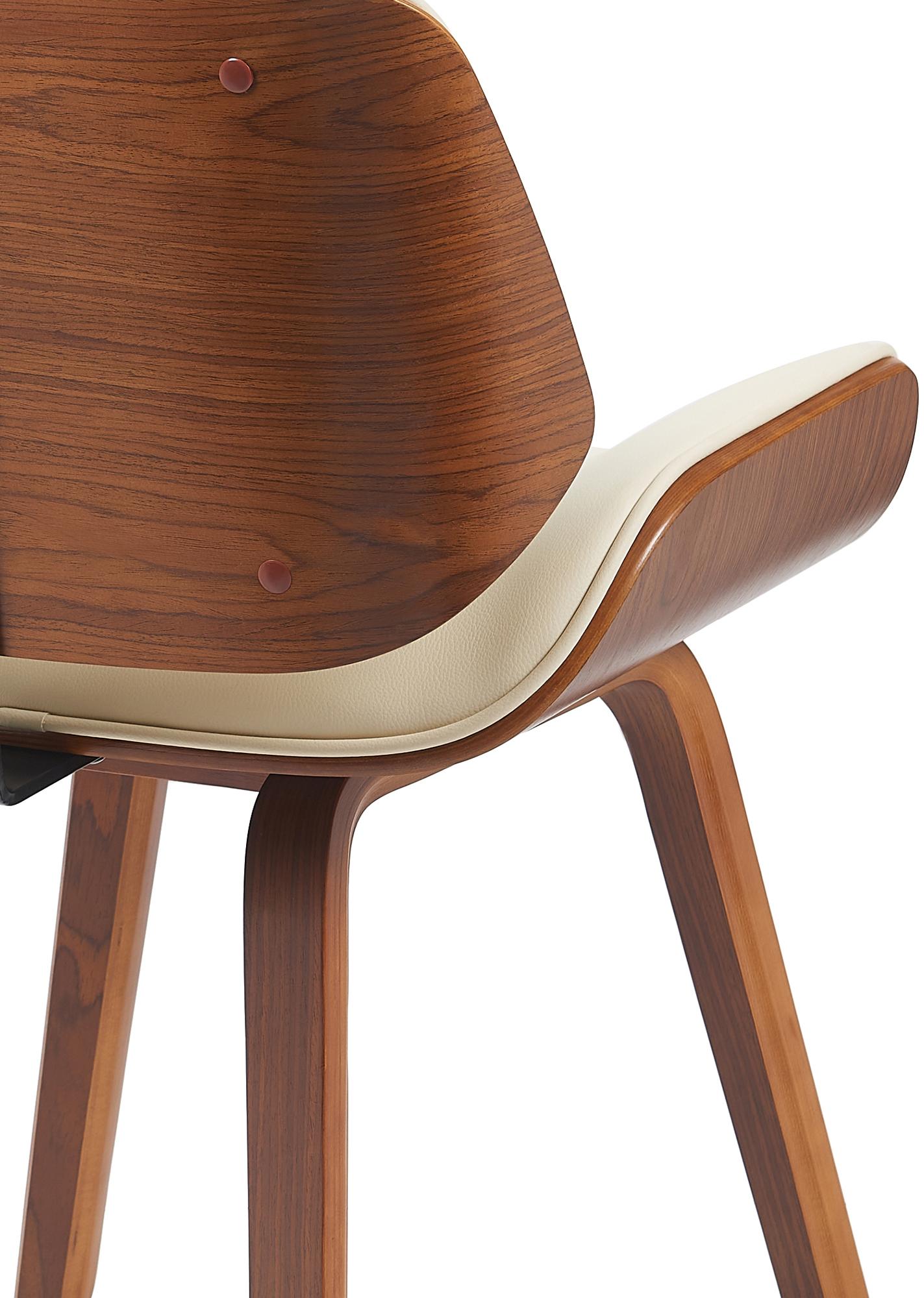 Het onderstel is gemaakt van stevig beukenhout met een elegante walnootafwerking, wat de stoel een hoogwaardige uitstraling geeft en perfect in verschillende interieurstijlen past. De vloerbeschermers onder de poten beschermen delicate vloeren en zorgen voor geruisloos verplaatsen.