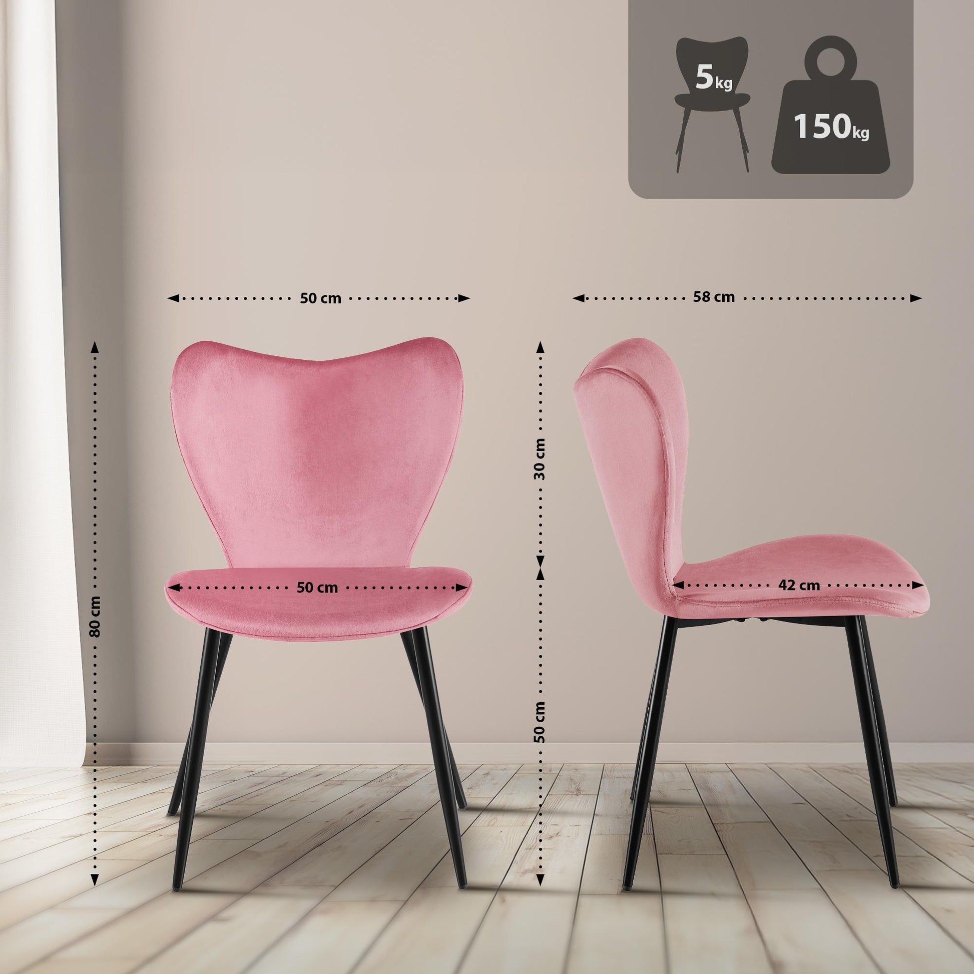 Roze Fluwelen Eetkamerstoel - Kuipstoel - Comfortabel Zitcomfort - Zwart Metalen Onderstel