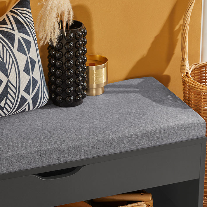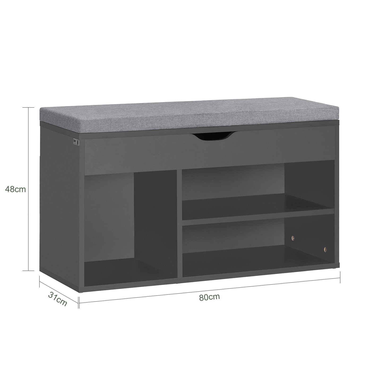 Schoenenbank met opbergruimte - Schoenenrek met zitje - Ingangsbank - Comfortabel zitkussen - Ruimtebesparend ontwerp - Donkergrijs - 80 cm x 48 cm x 31 cm