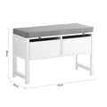Voldoende opslagcapaciteitDeze schoenenbank is uitgerust met twee ruime lades en biedt voldoende ruimte om al uw benodigdheden op te bergen, van schoenen tot accessoires, zodat uw ruimte netjes en georganiseerd blijft.
