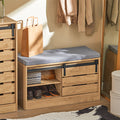 Comfortabele zitoptieUitgerust met een zacht zitkussen, biedt deze bank een comfortabele plek om te zitten terwijl u zich aan- of uitkleedt, waardoor het een praktische aanvulling is op uw dagelijkse routine.