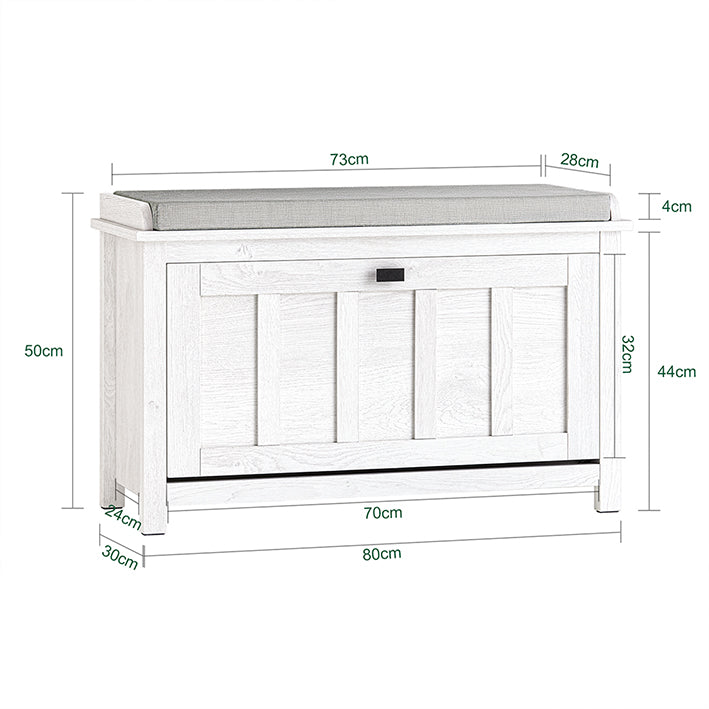 Schoenenbank met zitkussen - Schoenenkantelaar - Ingangsbank - Vintage Wit - Krasbestendig - Ruimtebesparend ontwerp - Eenvoudige montage - 80 cm x 50 cm x 30 cm