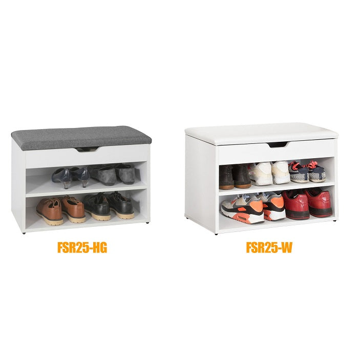 Schoenenbank met Zitting - Schoenenrek - Schoenenkast - Comfortabel kussen - Ruime opbergruimte - Veilige rubberen voetjes - 60cm x 43cm x 30cm - Lichtgrijs