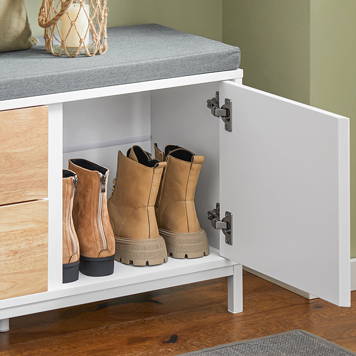 De schoenenbank met lades en deur voor ruimtebesparende schoenenopslag