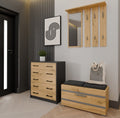 De ALEX schoenenkast combineert een modern design met praktische kenmerken en past moeiteloos in elk interieur. De opvallende combinatie van een antraciet lichaam en Artisan eiken fronten zorgt voor een eigentijdse uitstraling. De kast is uitgerust met vijf scharnierende deuren voor gemakkelijke toegang en netheid, en heeft zwarte kunststof handgrepen die het geheel een modern karakter geven. Dankzij de hoogwaardige afwerking, gladde zijkanten en nauwkeurige details is deze schoenenkast een duurzame en stijlvolle keuze voor jouw hal, gang of slaapkamer.