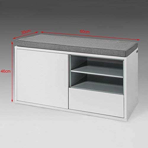 Details: Schoenenkast met modern design, schoenenbank, goede keuze voor je hal en woonkamer. De gewatteerde zitting die afneembaar is, is ideaal voor comfortabel zitten tijdens het aan- en uittrekken van schoenen. Het heeft een kast met een verstelbare interne plank. De plank met 2 niveaus kan volledig worden uitgetrokken en vormt een geweldige opbergoplossing. Er zit een lade onder de plank, een opbergruimte die perfect is voor schoenpoets, borstels en andere kleine spullen. Productdetails Afmetingen: L80 × B35 × H46cm. Materiaal: MDF/polyester, linnenachtige stof/spons. Gewicht: 22,8 kg. Draagvermogen: bank: 120 kg; lade: 5kg; plank: 5kg. Het artikel wordt geleverd in een platte verpakking en vereist zelfmontage. Gedetailleerde instructies meegeleverd. De decoratieve elementen zijn niet bij de levering inbegrepen. Als u vragen heeft, neem dan per e-mail contact met ons op, wij zullen zo snel mogelijk antwoorden!