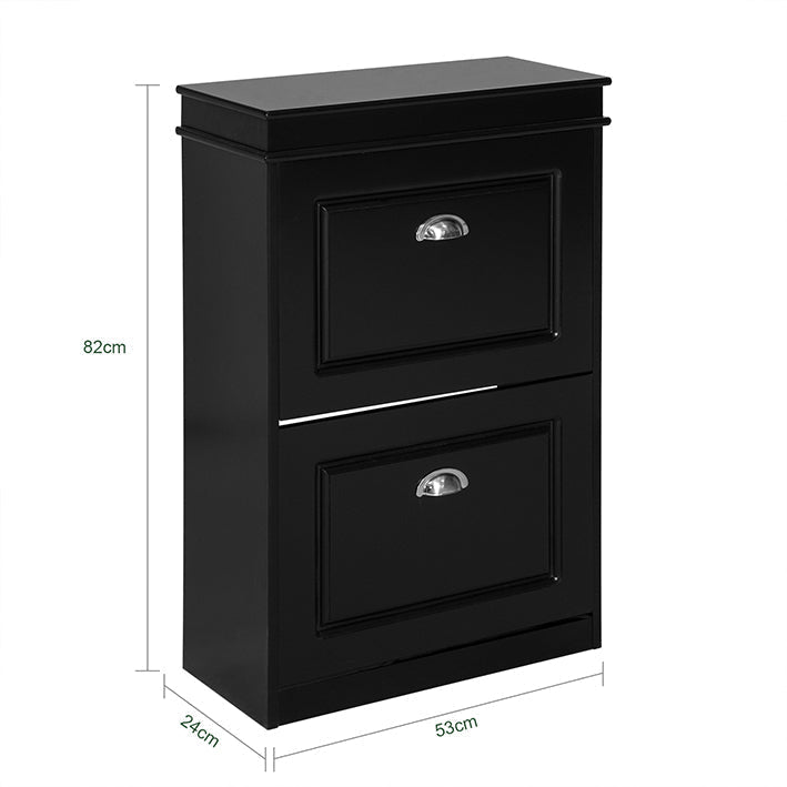 Veelzijdige opslagcapaciteitDe kast heeft twee kleppen die ruimte bieden aan verschillende schoenmaten en -stijlen, van sneakers tot hoge hakken, waardoor het een veelzijdige opbergoplossing is voor elk gezin.
